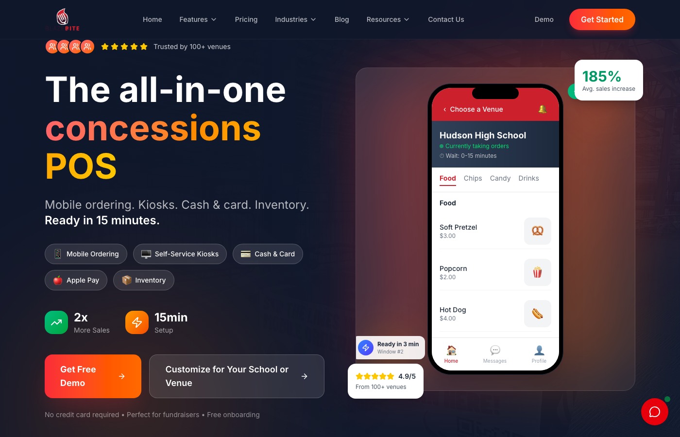 SaaS platform that lets schools set up mobile concession ordering in 15 minutes. Web plus iOS and Android apps.