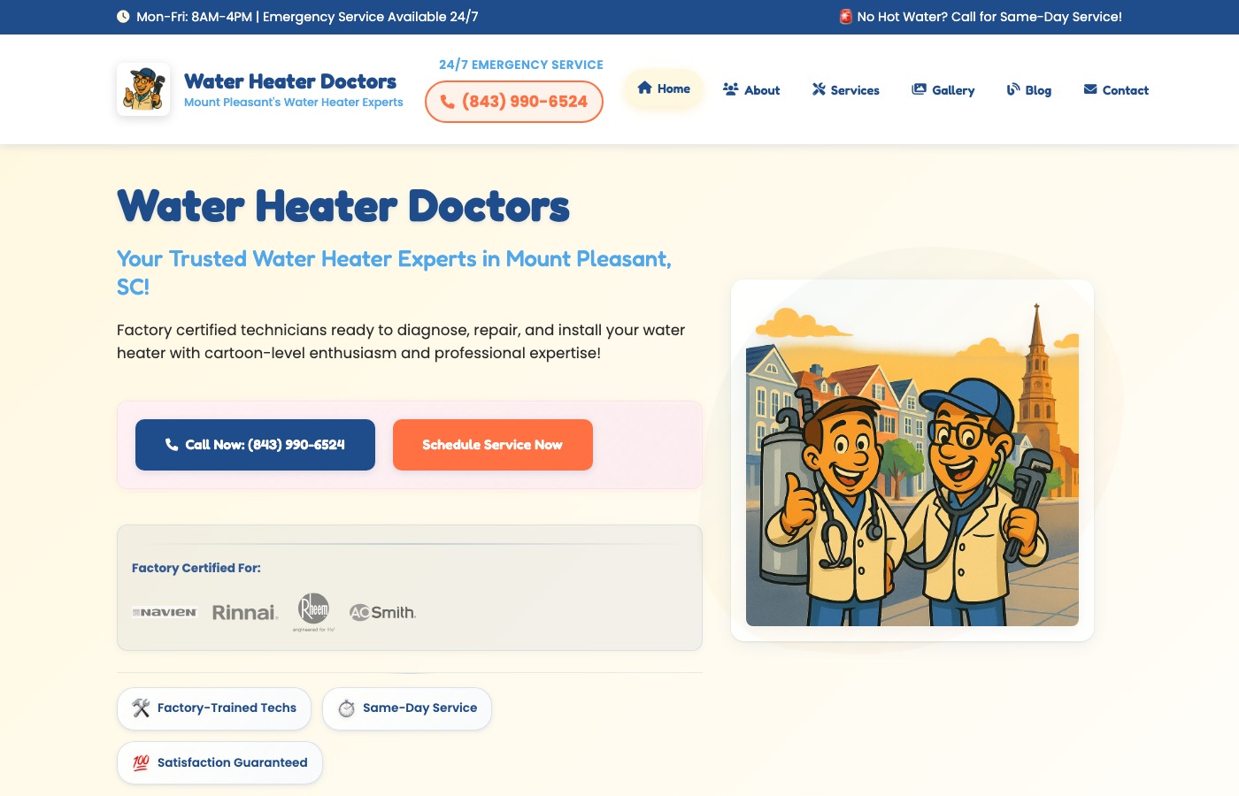 Service business website for water heater repair in Charleston, SC. Built for lead generation with service booking.
